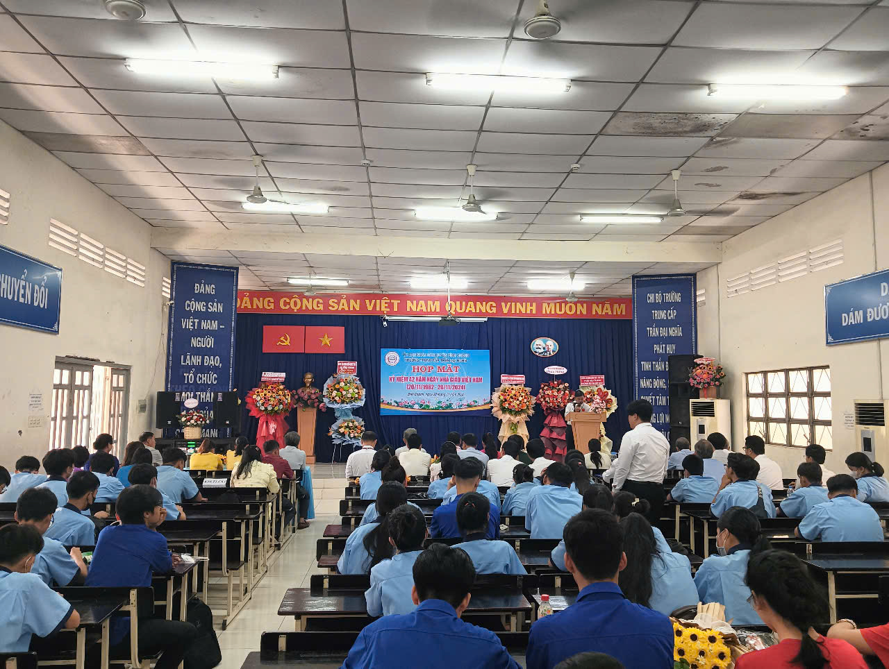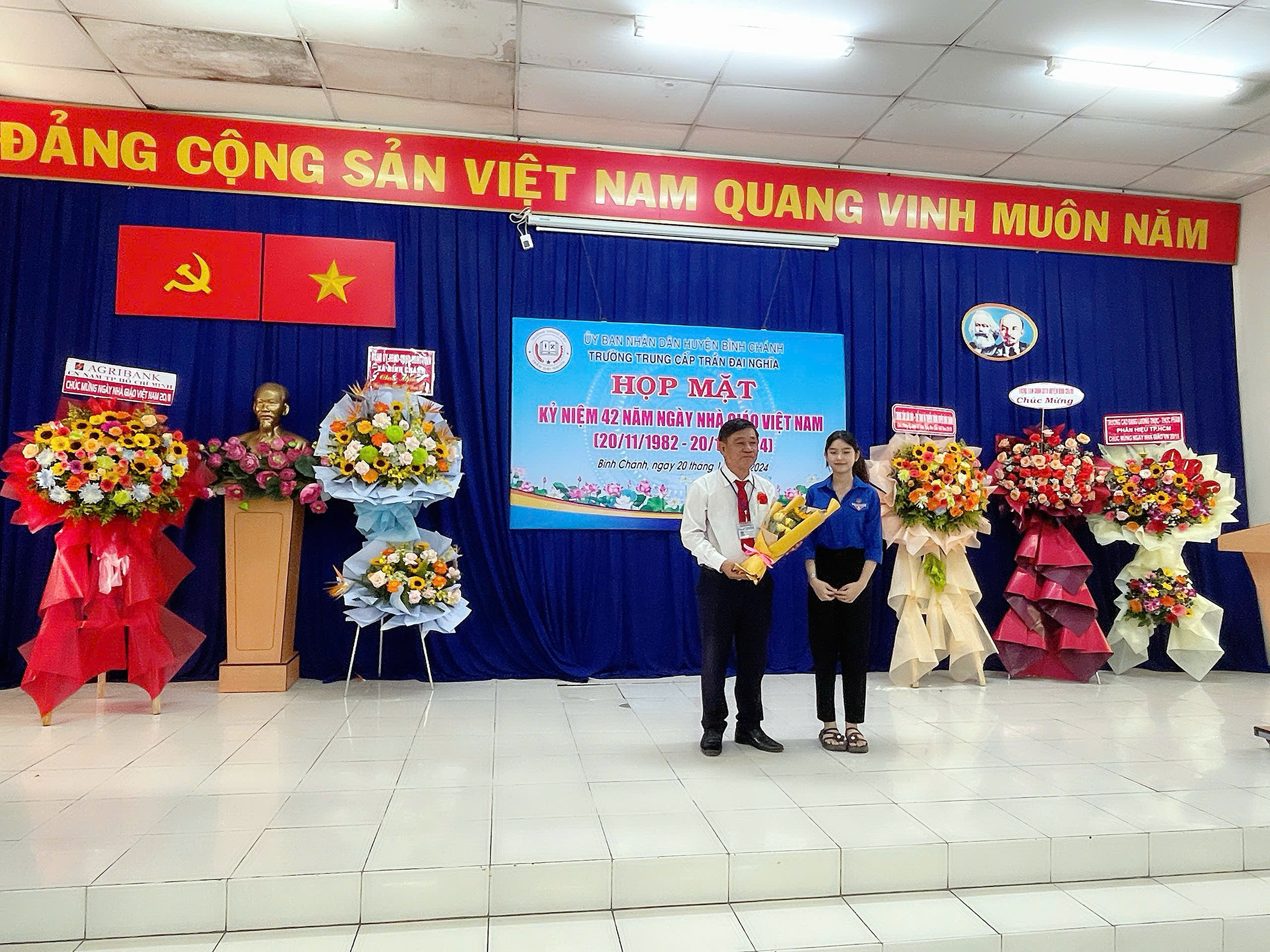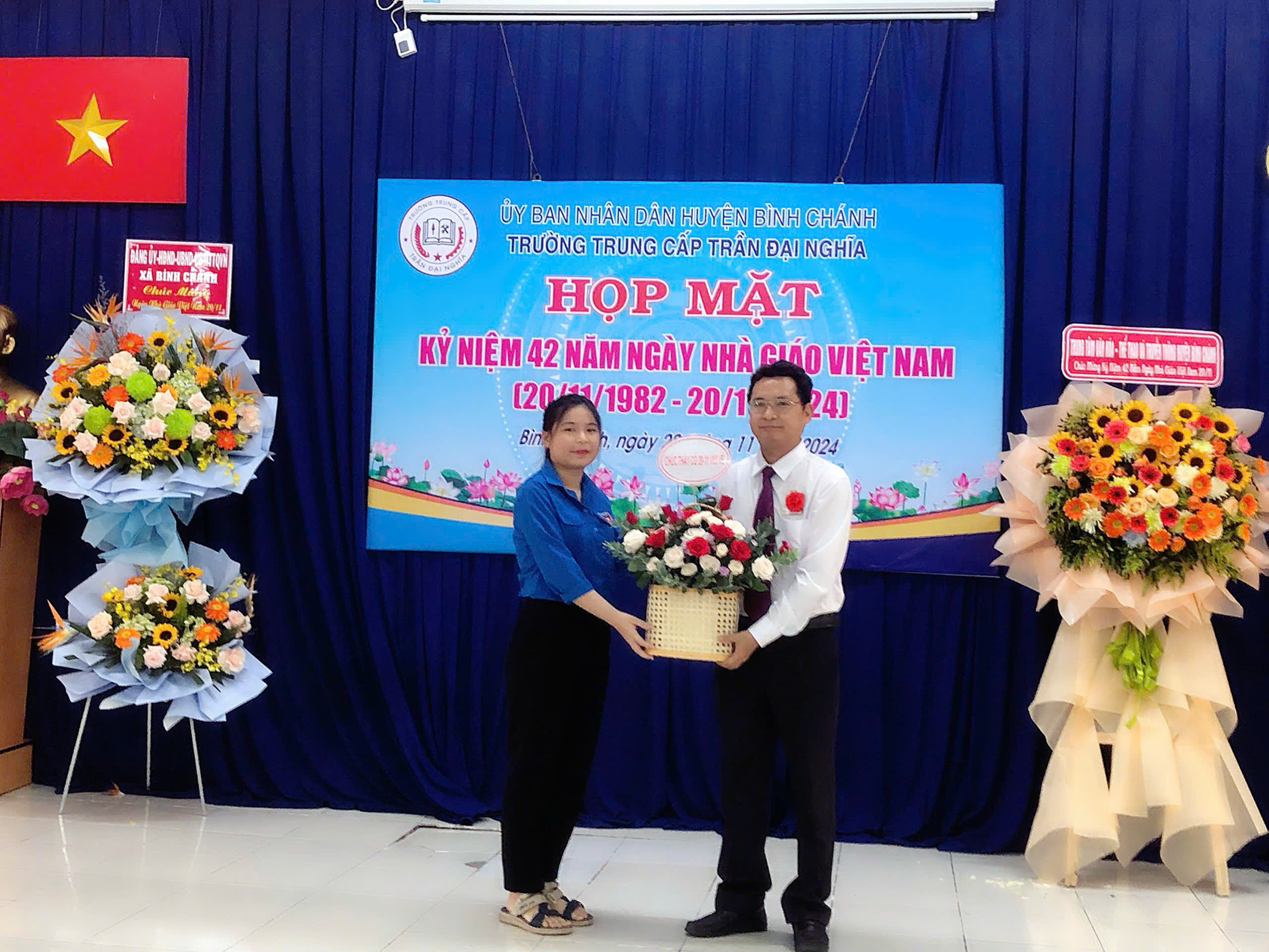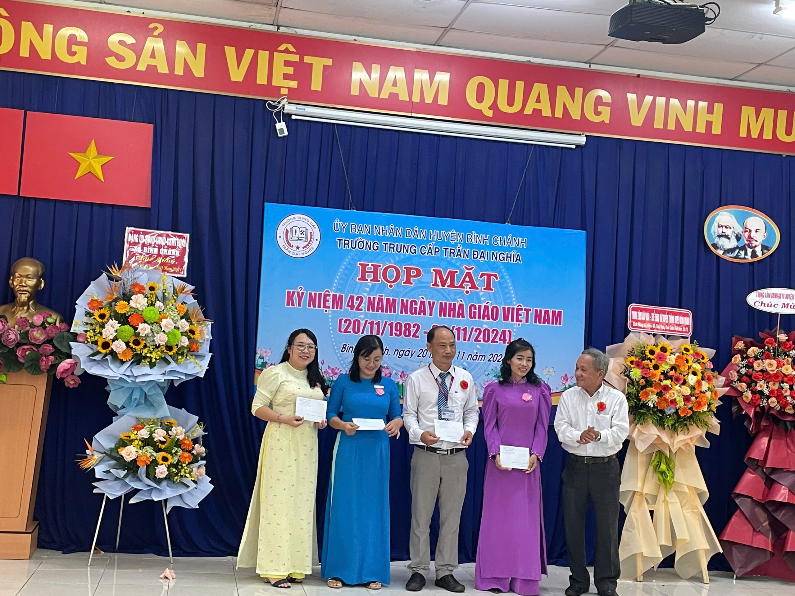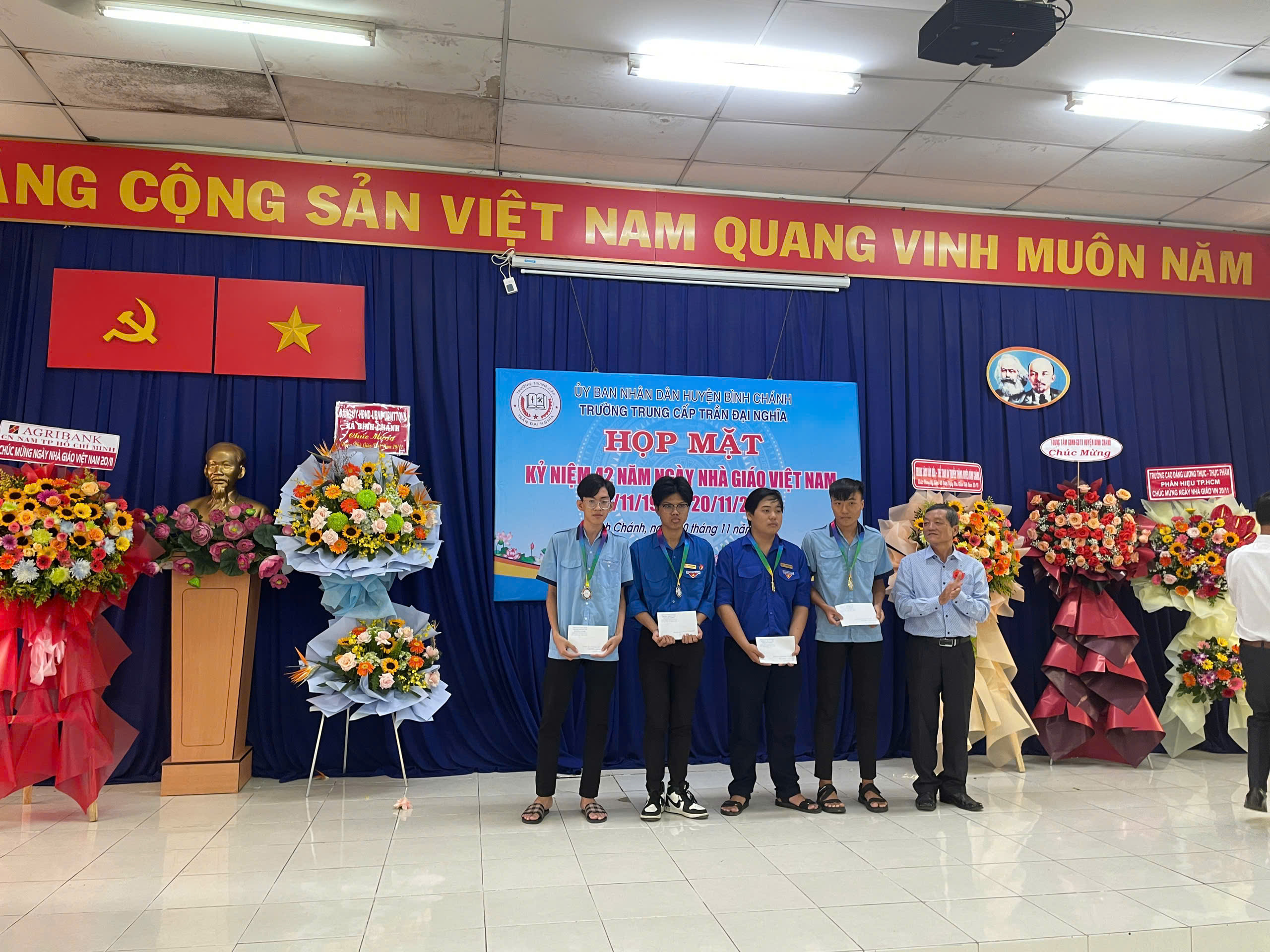 Sáng ngày 20/11/2024, Trường Trung cấp Trần Đại Nghĩa long trọng tổ chức Lễ kỷ niệm 42 năm ngày Nhà Giáo Việt Nam (20/11/1982- 20/11/2024) và Lễ khai giảng các lớp trung cấp Khóa 10, niên khóa 2024-2026. Đến dự có ông Nguyễn Quốc Tuấn - Phó Bí thư Thường trực Đảng ủy xă B́nh Chánh; ông Trần Hồ Cảnh Phúc - Giám đốc Trung tâm Văn hóa - Thể thao và Truyền thông Huyện; bà Trương Thị Hường - Đảng ủy viên - Phó Chủ tịch UBND xã Bình Chánh; ông Mai Ngươn Khánh - Phó Chủ tịch Hội Nông dân Huyện; ông Phạm Minh Hải - Giám đốc Công ty TNHH CPPM; ông Đỗ Mạnh Thắng - Phó Giám đốc Công ty Cổ phần Công nghệ Sơn Vũ; ông Hoàng Xuân Chính - Phó Hiệu trưởng Trường Cao đẳng Lương thực Thực phẩm phân hiệu tại TP.HCM; đồng chí thiếu tá Lê Nin Huy Phương - Cán bộ Ban Chỉ huy Quân sự Huyện; Quư thầy cô là CBQL qua các thời kỳ: Ban đại diện CMHS cùng CBQL, GV, NV và học sinh toàn trường. Dịp này, nhà trường ra mắt Hội đồng Trường gồm 7 thành viên, đặc biệt có sự tham gia của 02 Doanh nghiệp trên địa bàn huyện vào Hội đồng Trường; Trường cũng khen thưởng cho các cá nhân hoàn thành xuất sắc nhiệm vụ năm học 2023-2024; khen thưởng Phong trào Hội giảng và Hội thao chào mừng ngày Nhà Giáo Việt Nam năm học 2024-2025.