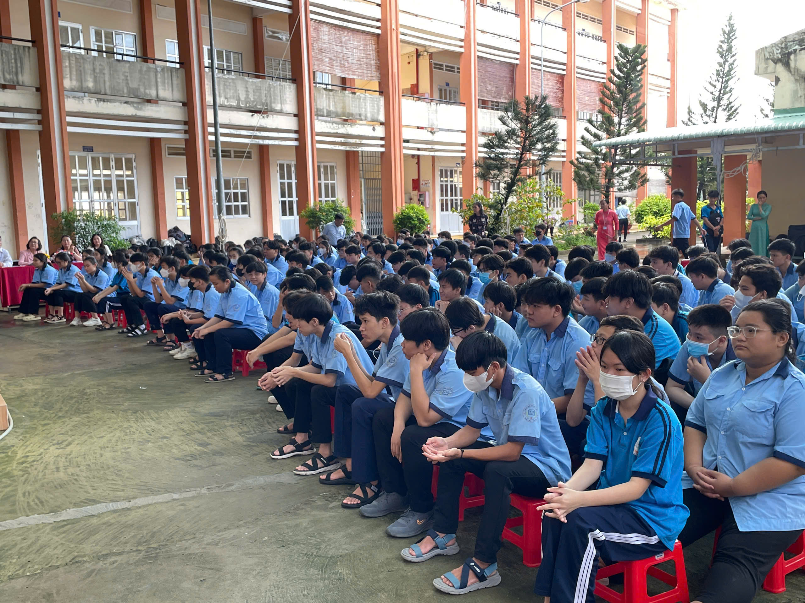 Hơn 300 học viên Trường Trung cấp Trần Đại Nghĩa tham gia buổi truyền thông nghe bà Lê Thị Thanh Nhã, nguyên Phó Trưởng Phòng Xây dựng nếp sống Văn hóa và Gia đình, Sở Văn hóa và Thể thao thành phố triển khai những nội dung cơ bản của Luật Phòng, chống bạo lực gia đình năm 2022, cụ thể: Hành vi bạo lực gia đình; Nguyên tắc phòng, chống bạo lực gia đình; Những hành vi bị nghiêm cấm trong phòng, chống bạo lực gia đình; Chính sách của Nhà nước về phòng, chống bạo lực gia đình. Bên cạnh đó, học viên còn được thông tin những nguyên tắc chuẩn mực về văn hóa ứng xử trong gia đình và cộng đồng, nhằm giúp học viên nhận thức được sự cần thiết của chào hỏi, cách thức chào hỏi, cách thể hiện sự lễ phép của học sinh đối với thầy cô và người lớn tuổi, ở trường cũng như ở nhà và ngoài xã hội, tạo ra môi trường học đường tốt hơn, không có bạolực học đường.